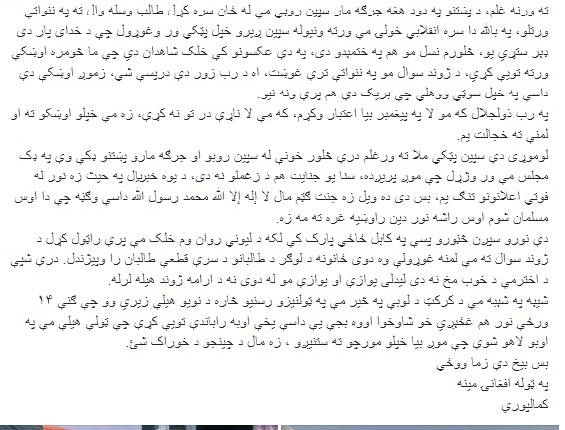 نوټ: دې پوسټ ته مې په کتو رایاده شوه