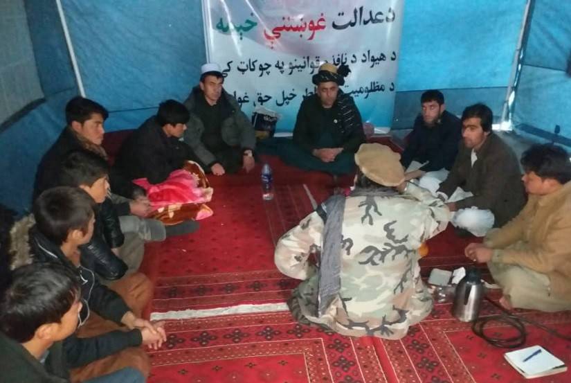 دغه قومي مشر وایي له دوه میاشتو را په دې خوا له خپلې کورنۍ لرې په کابل کې د ولسمشر د ملاقات لپاره په تمه دی چې لا یې هم غوښتنه نه ده منل شوې. نوموړی وایي له ولسمشر څخه د عدالت غوښتنه کوي او یواځینۍ موخه یې د خپلو حقونو ترلاسه کول دي. هغه زیاته کړه له دوه ورځو راهیسې د نوي ښار پارک ته څېرمه یې په دې یخنۍ کې خېمه درولې ده او د ولسمشر څخه غوښتنه کوي چې خپل ځان ته یې وغواړي او د خپل ولس د حقونو په تړاو ورسره بحث وکړي.