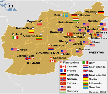 جایگاه علنی مراکز نظامی امریکا و ایساف در افغانستان در سال 2014