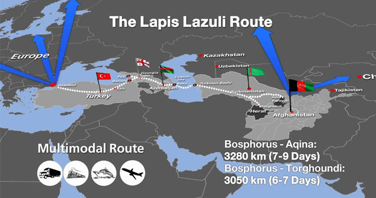 اقتصادي ګټې. افغان ولسمشر اشرف غني وايي په راتلونکو دريو کلونو کې به اروپا ته د افغانستان نژدې ۸۰ سلنه صادرات او واردات د لاجوردو له لارې کېږي. دغه لار د منځنۍ اسيا د هېوادونو په منځ کې تېرېږي او د ترکيې له لارې ازادو اوبو ته رسېږي.