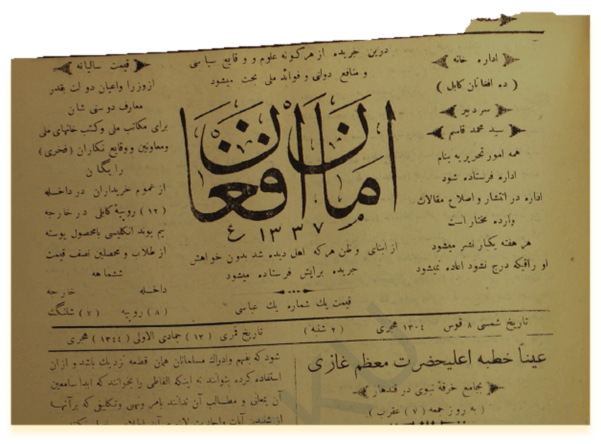 «امان افغان»، سال ششم، شماره ۳۷ ،۸ قوس ۱۳۰۴ش (خطبه غازی امان الله خان در خرقه مبارک قندهار به روز جمعه، ۷ عقرب ۱۳۰۴)