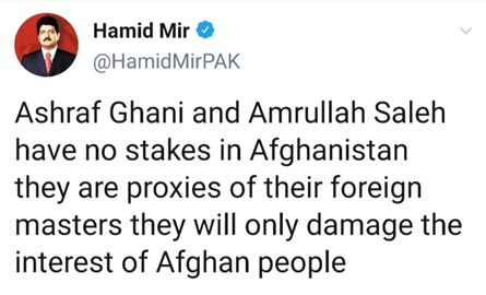 نوټ : حامدميره ته به ماشوم وې، خو د نصيرالله بابر د خولې خبره ده چې ويل به يې : ((موږ ځکه دوی [حکمتيار ومسعود ورباني] انتخاب او په لاس کې ونيول چې دوی په قوم کې ريشه نه لري)). نن خو بابر نشته خو خبره يې پر ځای وه. شرم خو تا ته دی چې هغه منحوسې ادارې چې له يو لورې يې روزلی او له بل لورې يې د سلمان تاثير په شمول ستا و د بي بي شهيدې په په سر او په سينو کې کې مرمۍ سړې کړې، د بي بي شهيدې د پلار ورمېږ يې د اعدام پر تخته ورمات او هم يې ورور ورته وواژه، د انصاف وعدالت حق يې هم ترې اخېستی، خو د دې باوجود يې لا ته صفت هم کوې. کنه په کار خو دا وه چې جنرال نيازی يې اعدام (پانسي) کړی وی، خو پوځ خپله ګناه پر بوټو ورواچوله.