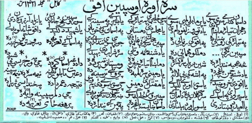 چندی قبل وبسایت «پشتون ملی اینداره» را بازنمودم، در صفحه اول این وبسایت پارچه شعری بس عالی که با نازک خیالی وتشبیهات وترکیبات زیبای شعری بیان شده بود، توجهم را بخود جلب نمود. با خواندن این شعر من متوجه بُعد دیگرمرحوم پشتون یعنی بُعد ادبی وفرهنگی او شدم. آنرا یک بار با هم میخوانیم وبعد به تبصره ام ادامه میدهم.