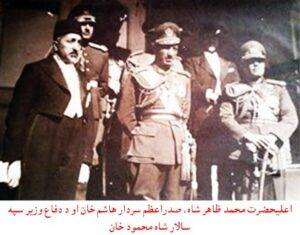 اعليحضرت محمد ظاهر شاه، صدراعظم سردار هاشم خان او د دفاع وزير سپه سالار شاه محمود خان![]() |