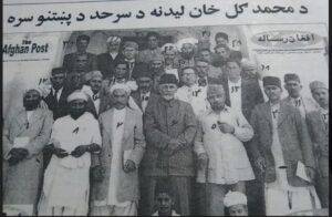 بعد از جنگ عمومی دوم در سال 1947 میلادی٬ جرگه ادبی پیشاور به کابل آمد، این نخستین باری بود که علمأ، ادبأ و نویسندگان بزرگ هردو طرف خط استعماری دیورند با هم یک جا میشدند، عبدالخالق خلیق، خان میرهلالی، سید مهدی شاه، استاد امیرهمزه شینواری، ماستر کریم، حکیم سنجری، زاخیل، ویک عده دیگر از آنطرف پشتونخوا، و غلام حسن خان صافی، استاد حبیبی، استاد رشتین، استاد خادم، استاد الفت، محمد رسول خان پشتون، سید شمس الدین مجروح، گلاب ننگرهاری، امین الله خان زمریالی و یک عده ذوات دیگر مشترکأ به منزل محمد گل مومند رفتند، بعد از اندکی توقف محمد گل مومند درحالیکه کلاه سیاه بلند قره قلی به سر و جامه سفید وطنی بر تن داشت، داخل گردیده، همه به پا خاستند، محمد گل مومند بعد از ابراز معذرت از تأخیرخود گفت که : با سعادت دیدن برادرانم آنهم بعد از مدت یکصد سال، از اشک ریزی چشمانم جلوگیری کرده نتوانستم، موصوف گفت من نمیتوانم که درین لحظه احساسات خود را تبارز بدهم ولی مختصر میگویم که این یک آغاز بسیار مبارک است.