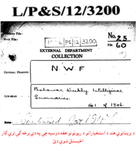 د بريتانوي هند د استخباراتو د رپوټونو هغه دوسيه چې په دې برخه کې ترې کار اخيستل شوې دئ![]() |