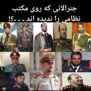 در حاليکه در امريکا در هر سه قوا يعنی هوايی، زمينی و بحری بيش از ۲۴۲ جنرال وجود ندارد۔به همه معلوم است که امريکا از نظرقدرت نظامی قويترين کشورجهان است ولی باز هم تعداد جنرالان ان انګشت شمار است. قابل ياد اوریست که خاک افغانستان کم و بيش معادل ايالت تکزاس ايالات متحده امريکا است۔ به اين معنی که علاقه داری پنجشير چۀ رسد به ايالت تکزاس بلکه به نسبت ايالات متحده امريکا هم بزرګتر است!!! قرار معلوم اين شش صد (۶۰۰) جنرالان پنجشيری که در اردوی افغانستان کار ميکنند بيشترانها بيسواد و از تجارب عسکری مطلق بيګانه استند، ولی بنا بر امتيازاتيکه از طرف پنتا ګان (وزارت دفاع امريکا) و بخصوص از طرف رمسفلد وزير دفاع سابق امريکا اعطا شده شده بود نه تنها اشخاص بيسواد به رتبۀ جنرالی رسيدند بلکه يکی از خاين ترين و احمق ترين شخص يعنی فيل مارشال بينی (فهيم) از طرف وزير دفاع امريکا دونالد رمسفلد به اعلی ترين رتبه مارشالی مفتخرګرديد۔شخص فهيم فاقد تمام اساسات ملی و عسکری بشمار ميرود ولی متل است “مربی داری مربا بخور” چرا که دراين مملکت جفا کش معيار ها در نظر ګرفته نميشود بلکه هر چيز بنا بر خيانت استوار است هر چيزيکه نا ممکن است ممکن شده ميتواند۔