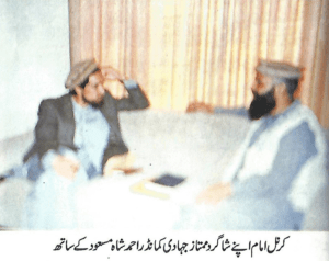 …برای دو هفته آنان را تعلیم دادم. خوب، وظیفه من همین اندک بود، ادامه کار به دگروال نصیرالله بابر ارتباط میگرفت. ایشان برای چندین ماه دیگر آنان را مورد آموزش قرار داد. هیچ کسی نمیداند که دگروال نصیرالله بابر یک رهبر جهادی به شمار میرفت. میخواهم به جهانیان بگویم که این کار را جنرال نصیرالله بابر آغاز کرده بود. پس از آموزش یک گروه، خاموشی مطلق حکمفرما گشته و پس از سه ماه گروه دیگری جهت پرورش از راه میرسید و سه ماه بعد گروه دیگر.