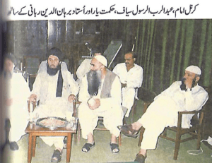 در آن زمان پس از اتمام کورس چتربازی در امریکا، قومندان مکتب چتربازی در پشاور بودم. دگروال نصیرالله بابر این گروه افغانها را دور هم گرد آورد، هرچند جمع کردن آنان کار آسانی نبود و چندین ماه را در بر گرفت. وی حزبی برای این افغانها ساخت. استاد ربانی مسوول حزب مذکور شد و بقیه نیز اعضای حزب. همه تحصیلکرده بودند. پس از ساخت حزب، این جوانان افغان گفتند: «ما را آموزش نظامی بدهید تا به دشمنان خود که به سوی ما شلیک کرده و ما را میکشند، جواب بالمثل نظامی بدهیم.» منظور اینان ارتش سردار داوود بود که آنان را مجبور به فرار به اینجا کرده بود. دگروال بابر به ذوالفقار علی بوتو اطلاع داد و وی به ارتش گفت که باید فردی به آنان آموزش نظامی دهد.