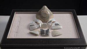 د جواهراتو يوه اسرائيلي شرکت، د يوه چينايي سوداګر په فرمايش تر ټولو «قيمتي» ماسک جوړ کړی دی. دغه طلايي ماسک چي الماس پکښي کارول سوي، څه د پاسه يو ميليون يورو ارزښت لري.