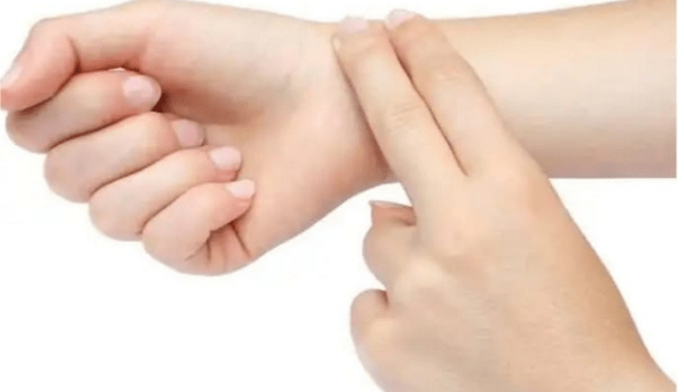 د نبض کتلو تر ټولو اساسي ځای د لاس غټې ګوتې د بېخ لاندې د لاس په بند کې دی . ( انځور )