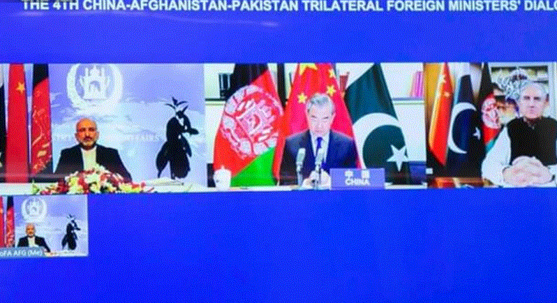 د چین، افغانستان او پاکستان د بهرنیو چارو وزیرانو په ترسره کړې انلاین غونډه کې د افغانستان د سولې پر روان وضیعت او په سیمه کې د ترهګري پر وړاندې پر ګډې مبارزې بحثونه کړي.