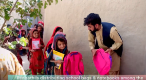 قلم لار په کليوالو ماشومانو د ماشومانو ښوونځي بستۍ بکسي وويشلي .