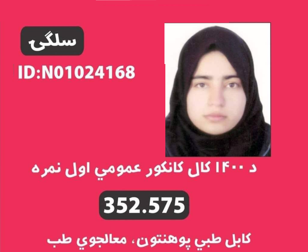 د سږکال د کانکور عمومي اول نمره اغلي سلګۍ چې د علم او آدب کور لغمان ولايت ، د الينګار ولسوالۍ د شګۍ کلا اوسېدونکې ده. او د ۳۵۲،۵۷۵ نمرو په ترلاسه کولو سره يې د هېواد په سطحه لومړی مقام خپل کړ.
