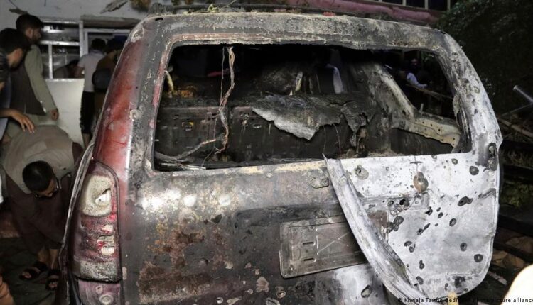 د امریکايي پوځ په حواله د بې پیلوټه طیارې دغه حمله د داعش ملیشو پر یوه نقلیه وسیله باندي تر سره سوې ده، کومه چي د چاودیدونکو موادو څخه ډکه وه او د کابل د هوايي میدان دپاره یو بلقوه تهدید ؤ. خو د درو ملکي کسانو وژنه یې منلې ده.