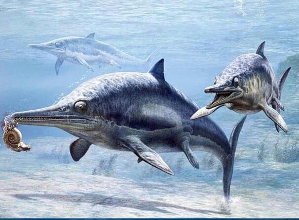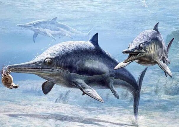 ایکتیوسورها همزمان با دایناسورها میزیستند، اما این ماهیهای خزندهسان جانورانی کاملا متفاوت بودند. آنها بیش از ۲۴۶ میلیون سال پیش و در طول دوره تریاسیک (Triassic) از خزندههای زمینی تکامل یافتند. این جانوران به تدریج سادهتر و ماهیسانتر شدند و گونههای مختلف آنها تا ۹۵ میلیون سال قبل در دریاها رفت و آمد داشتند.