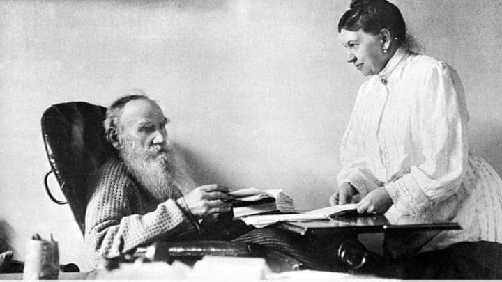 انځور کې تولستوی او د هغه مېرمن صوفیا ښکاري.