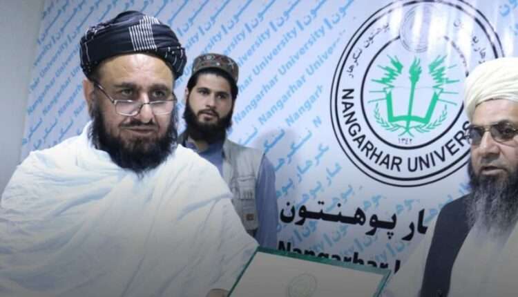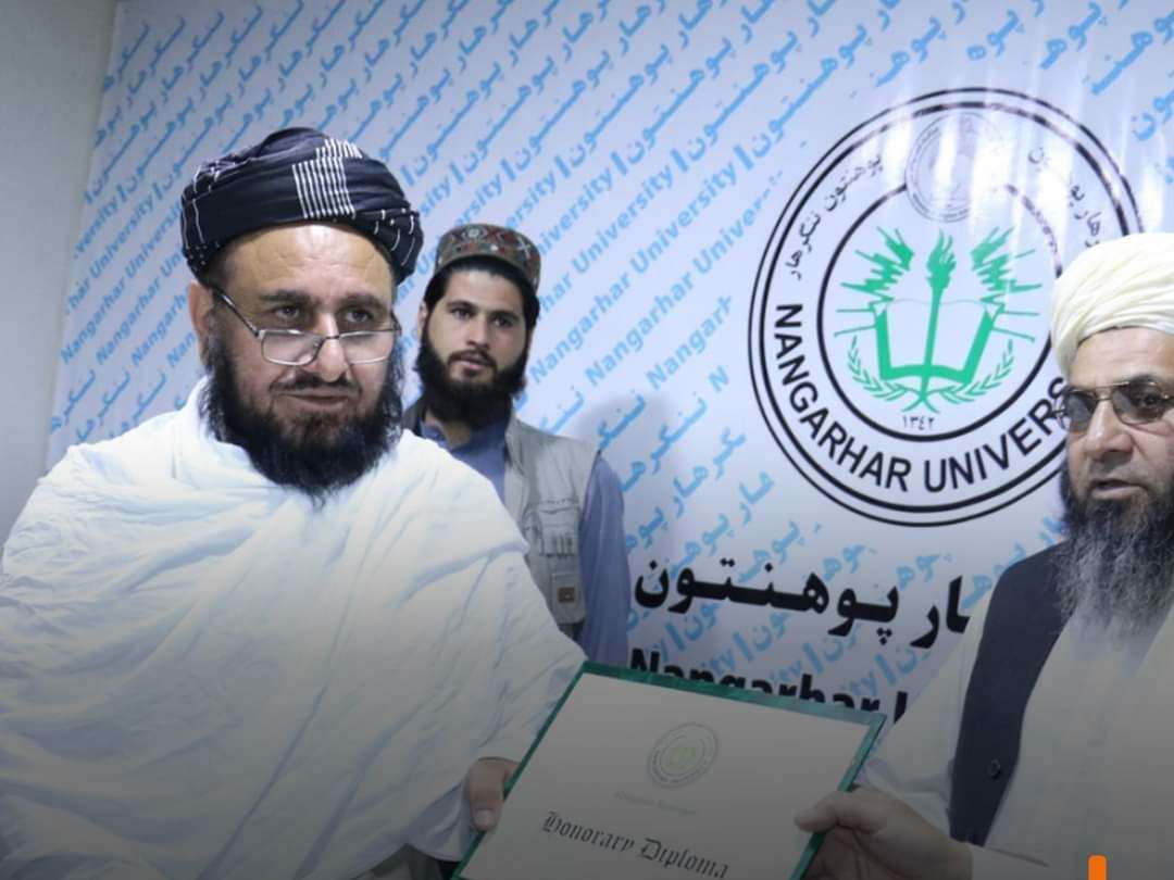 د ننګرهار پوهنتون مسوولان وايي چې د هېواد د لوړو زدهکړو وزارت سرپرست عبدالباقي حقاني ته یې افتخاري دوکتورا ورکړې ده.