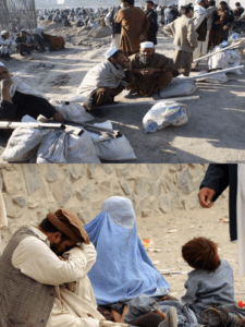د همدې دلایلو له امله په افغانستان کې د لوږې څونامي څپې مرگونې کېـږي او بېوزلي خلک لاپسې ځپي، ان تر دې چې افغان ماشومان شاقه کارونو ته اړایستل شوي دي او داسې کارونه ترسره کوي چې په هېڅ ډول قانون برابر نه دي. د افغان کورنیو د مشرانو له پاره کار نه شته چې د خپلو بچیانو د نس مړولو له پاره کار وکړي، دوی مجبور دي چې وروستۍ لاره انتخاب کړي چې هغه سوال کول او گدايي ده، هغه هم څوک یوڅه په لاس کې ورته ږدي او څوک څه نه شي ورکولای.