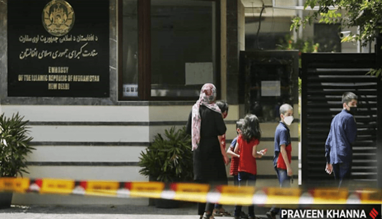 په نوي ډيلي کې د افغان سفارت چارې د هغو ديپلوماتانو او پرسونل له خوا مخته وړل کېږي چې د محمد اشرف غني په مشرۍ د افغانستان د پخواني حکومت له خوا ټاکل شوي او د هندي چارواکو مجوز هم له ځانه سره لري.