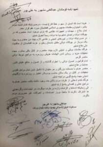 د عبدالغني مشهور په علیپور د ضمانت پاڼه کې لیکل شوي چې؛ هر ګاه مقامات دولتی او امنیتی لازم ببیند، حاضرم در کابل باقی بمانم و جهت تحقیقات مزید و روشن شدن اتهامات خویش روزمره به مراجع دولتی حاضر ګردم. کله چې مجرم تښتي او د حکومت په ضد بیا فعالیت کوي، نو د مجرم ضمانت کوونکې باید په عوض د هغه ونیول شي او مجبور شي چې مجرم راولي. د علیپور ضمانت کوونکي او د ضمانت کوونکو تاید کوونکی، د جمهور رئيس دویم مرستیال و چې باید د هغه په عوض محاکمه شوي وې. د یادونې وړ ده د علیپور ملیشې د ایران لخوا حمایه کیدلې.