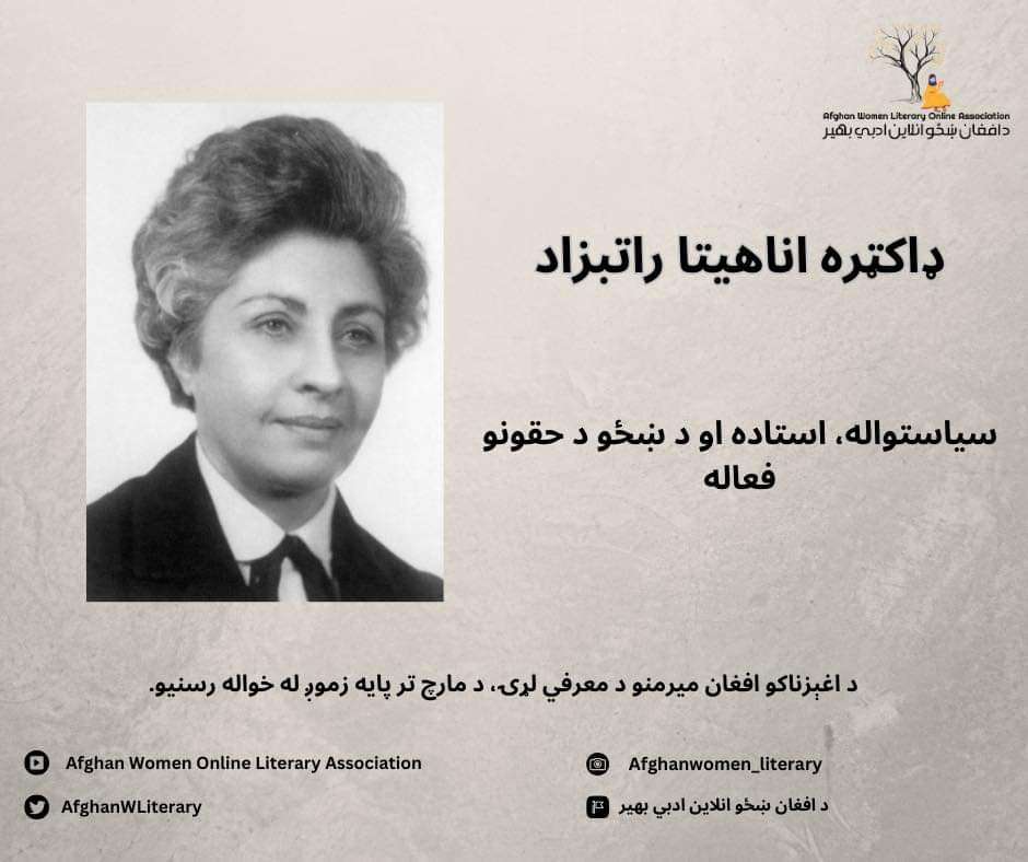 ا ناهیتا راتبزاد زمونږ د هیواد یوه سیاسي او ټولنیزه فعاله، سوسیالیست مشره او په افغانستان کې د ښځو د برابرۍ او ازادۍ یوه کلکه مدافعه وه. د ښځو مساوي حقوقو، پرمختګ او عدالت لپاره د هغې متداومو هڅو او قوي تعهد په سبب به په تاریخ کې ددې نوم او شخصیت نه هېریدونکی دی.