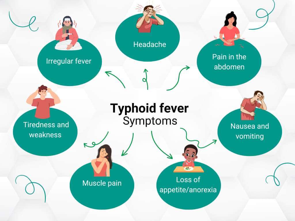 دگيدى خوږ او دكولمو د غږ جگوالى،دنبض اهستگي(معمولاً كله چى ناروغ تبه ولري د هغه د زړه يا قلب حركات زيات شي،خو په دى ناروغى اخته وگړو زړه دا توان نلري)