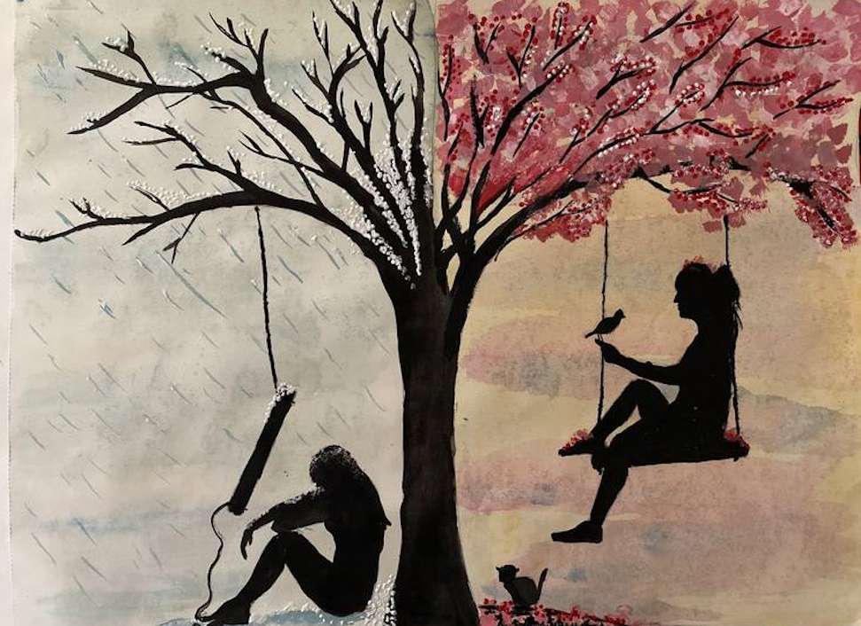 د پسرلي هوا یې په زړه کې داسې تېرېږي را تېرېږي لکه په زړه کې یې چې سوری وي. زړه یې یو ډول درد ورسره کوي او تېر وخت ور یادوي، د باران سره یې اوښکې ګډې په ځمکه ځي. اتاق تیاره ورته ښکاري، د باندې یې زړه تنګ وي، هېڅ ځای د کېناستلو لپاره نه لري.