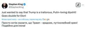 سټیفن کینګ ليکلي : “ټرمپ خاین دی او د پوتين مينوال او ګنده انسان!”