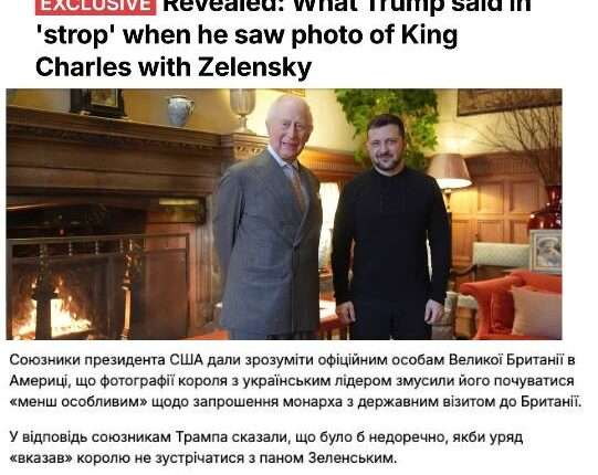 واشنګټن، Daily Mail – د امریکا پخواني ولسمشر ډونالډ ټرمپ له بریتانیا سره خپله لېوالتیا له لاسه ورکړې، وروسته له هغه چې د اوکراین ولسمشر ولودیمیر زلنسکي د بریتانیا له پاچا چارلز درېیم سره یو ګډ عکس واخیست.