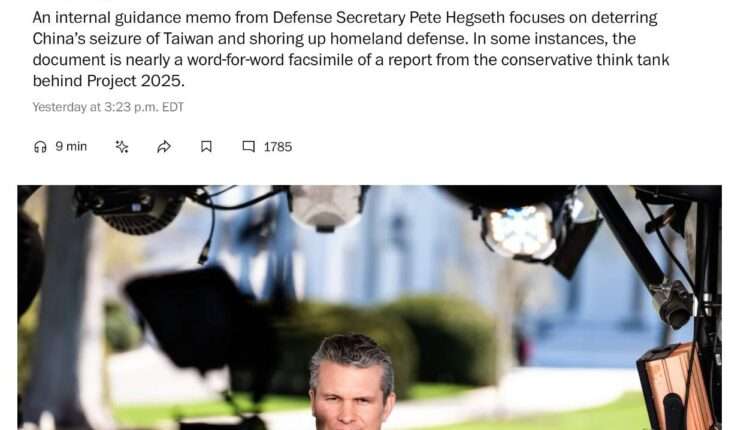 د واشنګټن پوسټ (WP) د معلوماتو له مخې دا اسناد ښيي، چې پینتاګون نورې نړیوالې مسئلې ثانوي ګڼي، او د ټولو امکاناتو تمرکز پر چین او تایوان کوي.