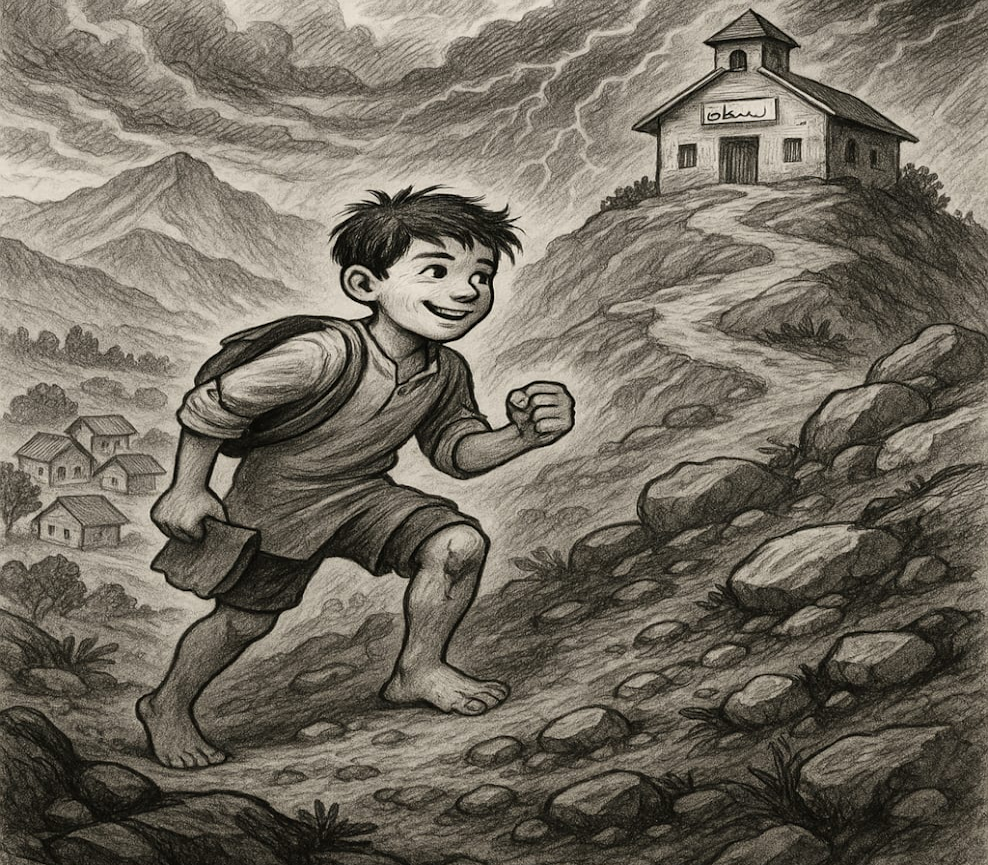 در گوشهای از یک دهکدهی کوچک، پسری زندگی میکرد که هر روز با پای برهنه از کوه بالا میرفت تا به تنها مدرسهی منطقه برسد. مردم دهکده میگفتند: «این راه سخت است، ولش کن!» اما او میخندید و میگفت: «تا وقتی توان دارم، باید بروم.»