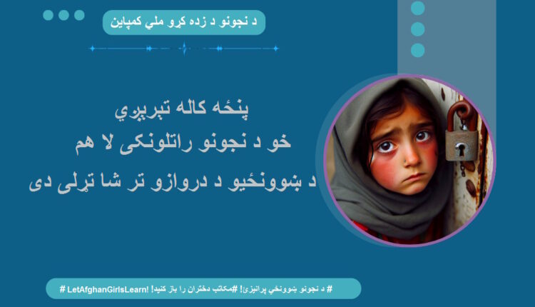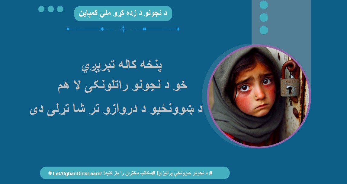 نن، د پنځم تعلیمي کال په درشل کې، موږ د افغانستان له ټولو خلکو—که له هر قوم، ژبې، سیمې يا ټولنیزې پرګنې څخه وي—غوښتنه کوو چې د نجونو د ښوونځیو د پرانیستو لپاره له یوه ستر، ملي، سراسري او همغږي کمپاین سره یوځای شي.