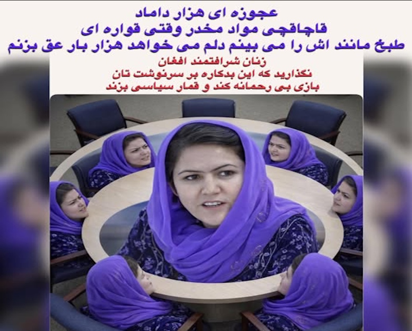در روزگاری که دختران افغان از مکتب رانده می شوند، مادران در سکوت گریه می کنند، و خواهران در سایهٔ ترس زندگی می کنند، این زن پلید بر میزهای قدرت قمار می زند.