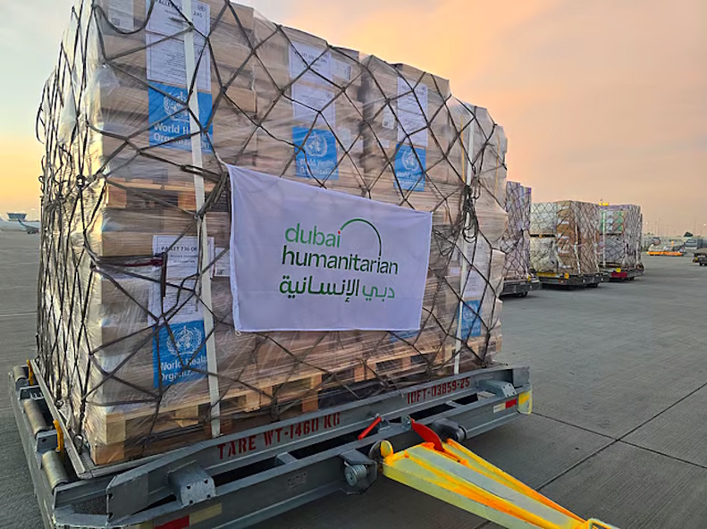 د راپور له مخې، دا محموله چې د دوبۍ له آل مکتوم نړۍوال هوايي ډګره لېږدول شوې، د روغتيا نړۍوال سازمان، د بې پولې ډاکترانو او د ملګرو ملتونو د ماشومانو د ملاتړ صندوق (يونيسف) مرستندوی توکي هم په کې شامل دي.