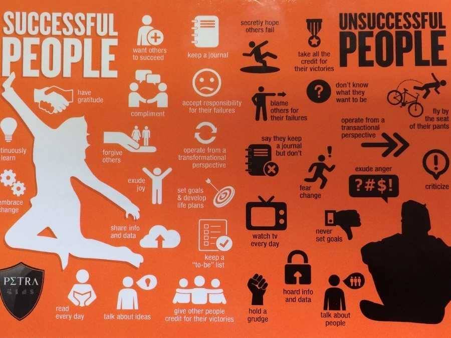 ۹ــ بریالي وګړي د خپلې راتلونکې په اړه فکر کوي، خو نابریالي وګړي بیا د خپل تېر وخت پسې سرېښ وي.