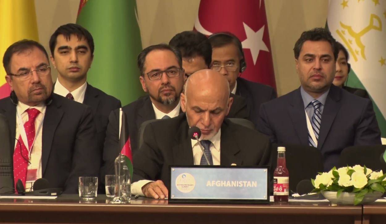 د ترکیې په استانبول ښار کې د اسلامي همکاریو د کنفرانس فوقالعاده ناسته چې د ترکیې د ولسمشر په نوښټ د یاد سازمان د غړو هېوادونو د مشرانو په حضور کې جوړه شوې وه افغان ولسمشر محمداشرف غني هم ورغلی و، نوموړي دغې غونډې ته د وینا پرمهال وویل: ”تېره یوه اونۍ کې تر فلسطینیانو زیات شمېر افغانان له منځه تللي دي. خو ما ځان مکلف وګڼلو چې په دغه فوق العاده ناسته کې د فلسطین له خلکو سره د خپلو وطنوالو د همدردۍ د څرګندولو لپاره ګډون وکړم.“