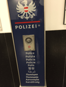 څه وخت وړاندی اتریش هیواد ته په سفرورغلی ووم ، دبیرته راستنیدو په وخت کښی دنوموړي هیواد پایتخت د ویانا دهوایې ډګر په یوه اوږده دهلیز کښی دخپل د پرواز ګیټ (کړکۍ ۰۳۶) دپیداکولو په نیت په یوه اوږده دهلیز کښی ور روان وم چی ، ناببره سترګې می په یوې ښکلې زړه پورې ولاړې ابي رنګې تابلو ورخښې شوې ، چی د (پولیس ) نوم په ډیرو ژبو، په لاتیني او یو شمیر نورو ژبو په الفبا کښل شوي وو ځا نته راښکودم اویو دبل پسی می ولوستل .
