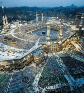 نن د عرفات، مزدلفې او منی په دښته کې هره خوا یواځی سپین کفنونه، د سپین چکو خیمو ښارګوټي او یواځی یبله پښې او لوڅ سرونه لیدل کیږي. دلته د قربانۍ، زغم او برابرۍ یوه بی مثاله ننداره ده. میرمن ده که سړی، ووړ دی او که زوړ، عجم دی که عرب، ترک دی که پارسا، هستمند دی که نیستمند، خو د هر چا په خوله همدا یوه ناره ده چې: (لَبَّيْکَ اللّهُمَّ لَبَّيْکَ، لَبَّيْکَ لاشَريکَ لَکَ لَبَّيْکَ اِنَّ الْحَمْدَ وَالنِّعْمَةَ لَکَ وَالْمُلْکَ، لاشَريکَ لَکَ لَبَّيْک).